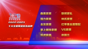 2023第七届家居品牌大会2023年7月27日在北京香山饭店举行,现场发布34个“2022-2023家居十大优选品牌”榜单,其中曲美家居、强力家具、全友家居、掌上明珠家居、双虎家居、联邦家私、林氏家居、红苹果全屋整配、V6家居、依丽兰上榜“2022-2023十大全屋家居优选品牌”,它们是2022-2023年度里以齐全的移动家具为基础,全面打通定制链,提供全屋家居解决方案的十个优秀品牌代表。