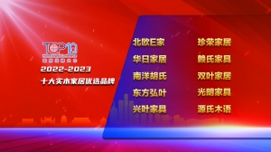 2023第七届家居品牌大会2023年7月27日在北京香山饭店举行,现场发布34个“2022-2023家居十大优选品牌”榜单,其中北欧E家、华日家居、南洋胡氏、东方弘叶、兴叶家具、珍荣家居、赖氏家具、双叶家居、光明家具、源氏木语上榜“2022-2023十大实木家居优选品牌”,它们是2022-2023年度里以实木材质作为产品核心主材的十个优秀品牌代表。