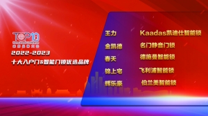 2023第七届家居品牌大会2023年7月27日在北京香山饭店举行,现场发布34个“2022-2023家居十大优选品牌”榜单,其中王力、金凯德、春天、锦上宅、辉乐豪、Kaadas凯迪仕智能锁、名门静音门锁、德施曼智能锁、飞利浦智能锁、伯兰美智能锁上榜“2022-2023十大入户门&智能门锁优选品牌”,它们是2022-2023年度里以入户门或智能门锁为主营业务的十个优秀品牌代表。
