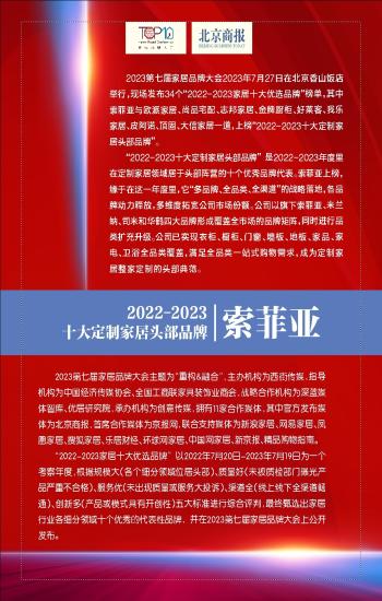 第T74版:2022-2023十大定制家居头部品牌:索菲亚