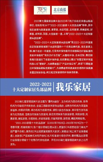 第T79版:2022-2023十大定制家居头部品牌:我乐家居