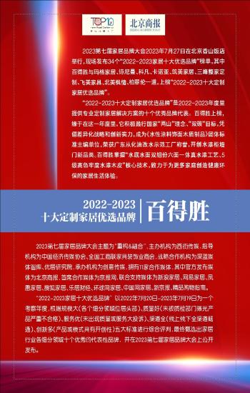 第T85版:2022-2023十大定制家居优选品牌:百得胜