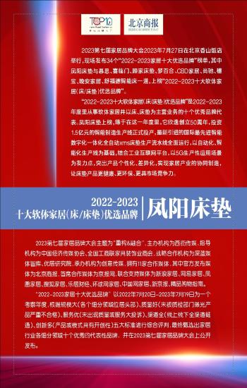 第T127版:2022-2023十大软体家居(床/床垫)优选品牌:凤阳床垫 上一版3  4下一版