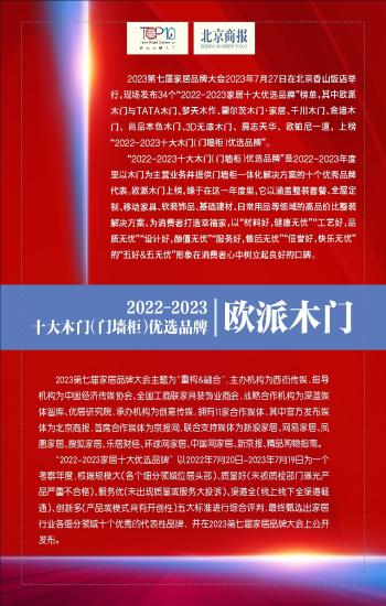 第T182版:2022-2023十大木门(门墙柜)优选品牌:欧派木门 上一版3  4下一版