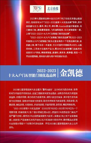 第T203版:2022-2023十大入户门&智能门锁优选品牌:金凯德 上一版3  4下一版