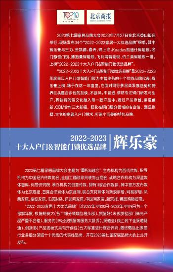 第T205版:2022-2023十大入户门&智能门锁优选品牌:辉乐豪 上一版3  4下一版