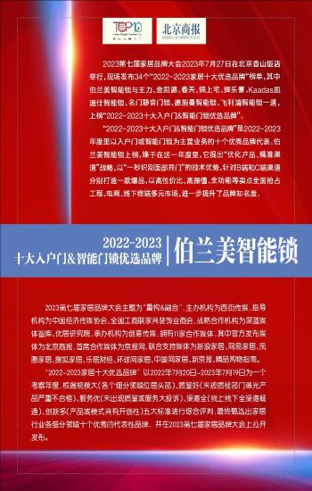 第T208版:2022-2023十大入户门&智能门锁优选品牌:伯兰美智能锁 上一版3  4下一版
