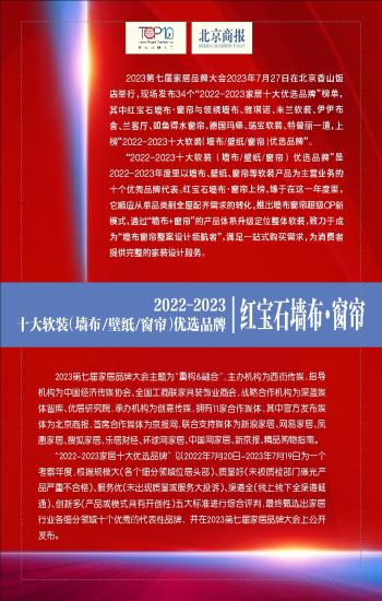 第T220版:2022-2023十大软装(墙布/壁纸/窗帘)优选品牌:红宝石墙布·窗帘