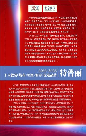 第T225版:2022-2023十大软装(墙布/壁纸/窗帘)优选品牌:特普丽