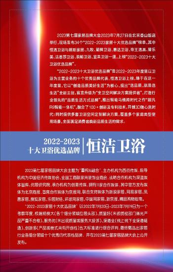 第T266版:2022-2023十大卫浴优选品牌:恒洁卫浴