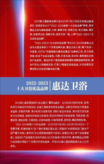 第T267版:2022-2023十大卫浴优选品牌:惠达卫浴