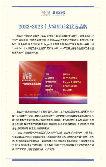 第T291版:2022-2023十大家居五金优选品牌:Reggar乐卡智能五金