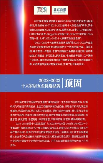 2022-2023十大家居五金优选品牌:顶固