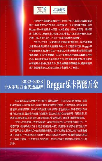 第T291版:2022-2023十大家居五金优选品牌:Reggar乐卡智能五金