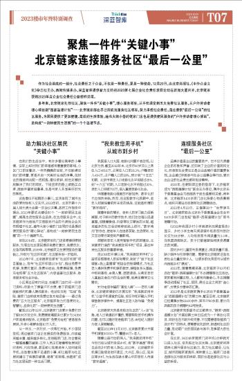这些看似不起眼的小事儿,实则体现了城市生活的便利性和人文关怀。2023年初,北京市第十六届人民代表大会第一次会议开幕。政府工作报告中提出,2023年要试点建设80个“一刻钟便民生活圈”,提高生活性服务业品质。在生活服务业中,北京链家作为房地产交易服务行业的代表性企业天然根植于社区。遍布大街小巷的门店同时也是提供便民服务的“暖心驿站”,是构成“一刻钟便民生活圈”的一个个温暖节点。