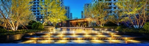 熙悦晴翠以“一轴两环六场十二园”为核心理念,实景园林示范区将“公园式”园林展现得淋漓尽致,据了解,整个园区绿地率高达35%。万余平景观绿轴和山谷溪林云涧六大剧场,彰显自然的天赋之美,实景示范区敢于展露“真颜”,也体现了项目对品质的自信,约500㎡的中央水景和景观会客厅,在匠心工法的修饰下,衍生出光与影的艺术、动与静的和谐之美。重点打造的弧形会客景亭,外观造型大气、优雅,廊架顶部镶嵌星空灯,仿佛身处“星海”。